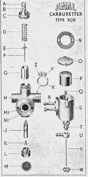 INDEX TO EXPLODED VIEW OF CARBURETTER 308.