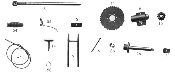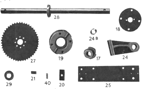 | 28 | Drive Spindle, state Mk. No. and type of ratchet hubs key and screws or screws only and overall length | 1 |